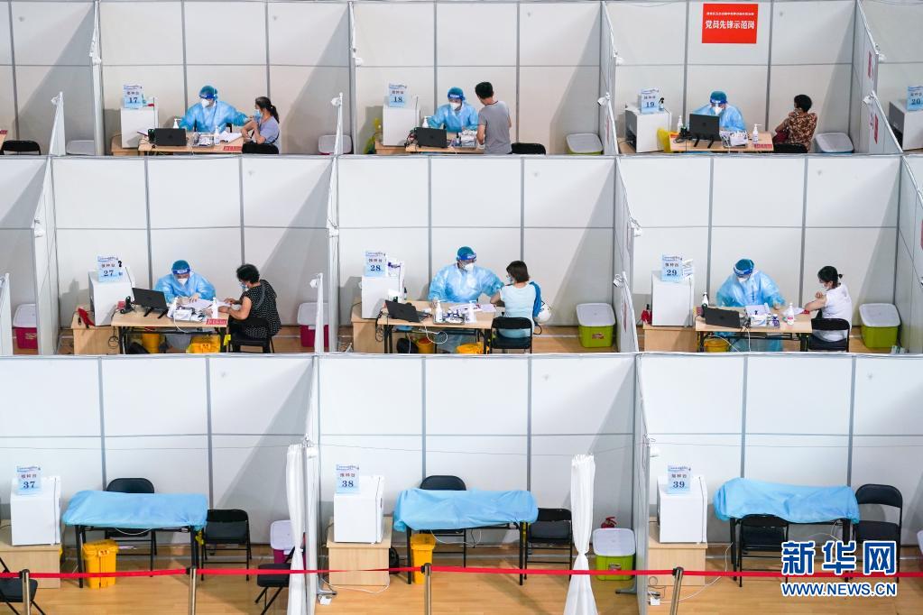 8月2日,市民在南京市鼓楼区五台山体育中心新冠病毒疫苗集中接种点接种疫苗。