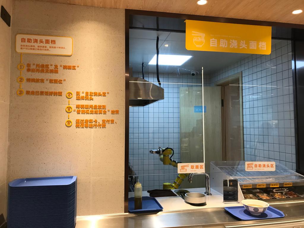 “价钱挺便宜的,餐食的选择也多,光早餐就有30多种,环境也很整洁。”家住附近的李大爷听说周围开了一家特别的新食堂,特地前来尝尝机器人做的面条有啥不一样,“吃着没啥区别,也挺香”。