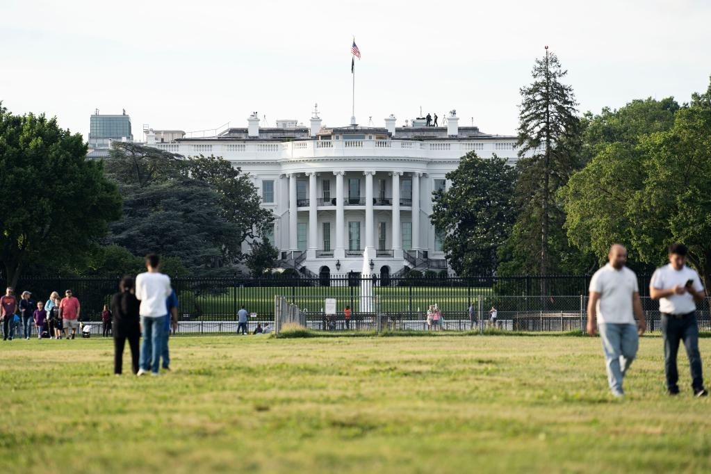 6月22日,游客在美国首都华盛顿的白宫附近游览。美国白宫应对新冠疫情协调专员津茨当天证实,美国无法完成在7月4日独立日前让70%成年人接种至少一剂新冠疫苗的目标。(新华社记者 刘杰摄)