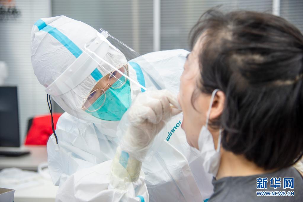 8月3日,市民在武汉市青山区光明社区检测点进行核酸检测。
