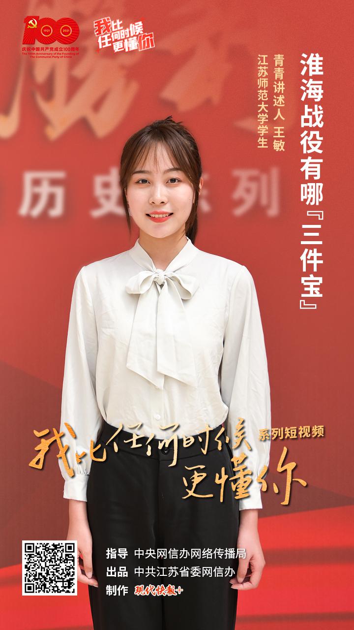 8月4日,“我比任何时候更懂你”系列短视频第11集《淮海战役有哪“三件宝”?》上线,本集青青讲述人是江苏师范大学学生王敏。