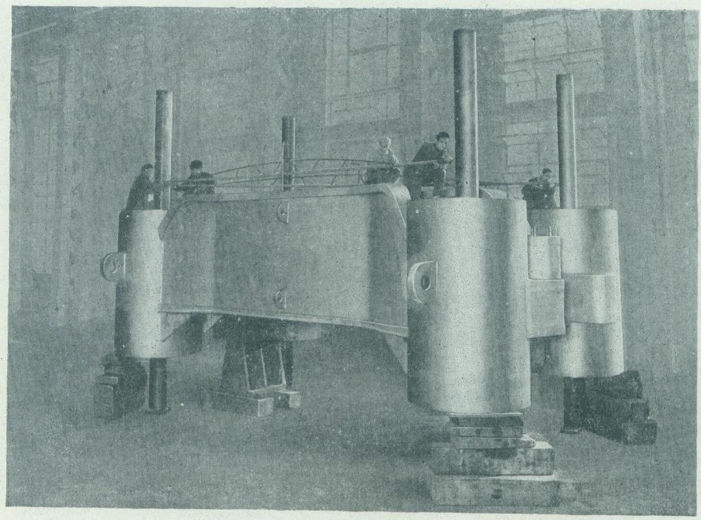 60多年前,工人们正在制作巨大的活动横梁。(采访单位供图)