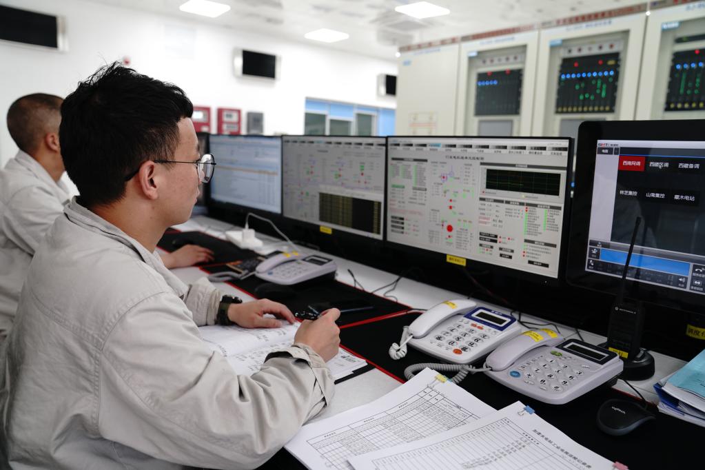 2021年7月11日,工作人员在西藏加查水电厂调度室值班。新华社记者刘洪明 摄