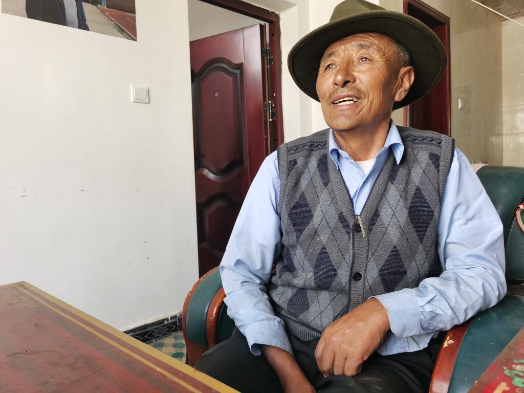 尼木县麻江乡达琼村60岁村民仁青回忆曾经捡牛粪、用煤油灯的生活(2021年7月14日摄)。新华社记者刘洪明 摄