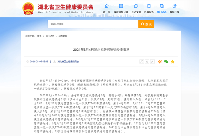 原标题:2021年8月4日湖北省新冠肺炎疫情情况