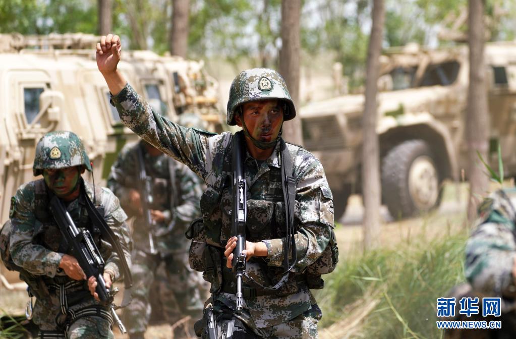 陆军第76集团军某特战旅特战营营长刘近带领特战小队进行突击清剿行动(7月14日摄)。新华社记者张永进摄