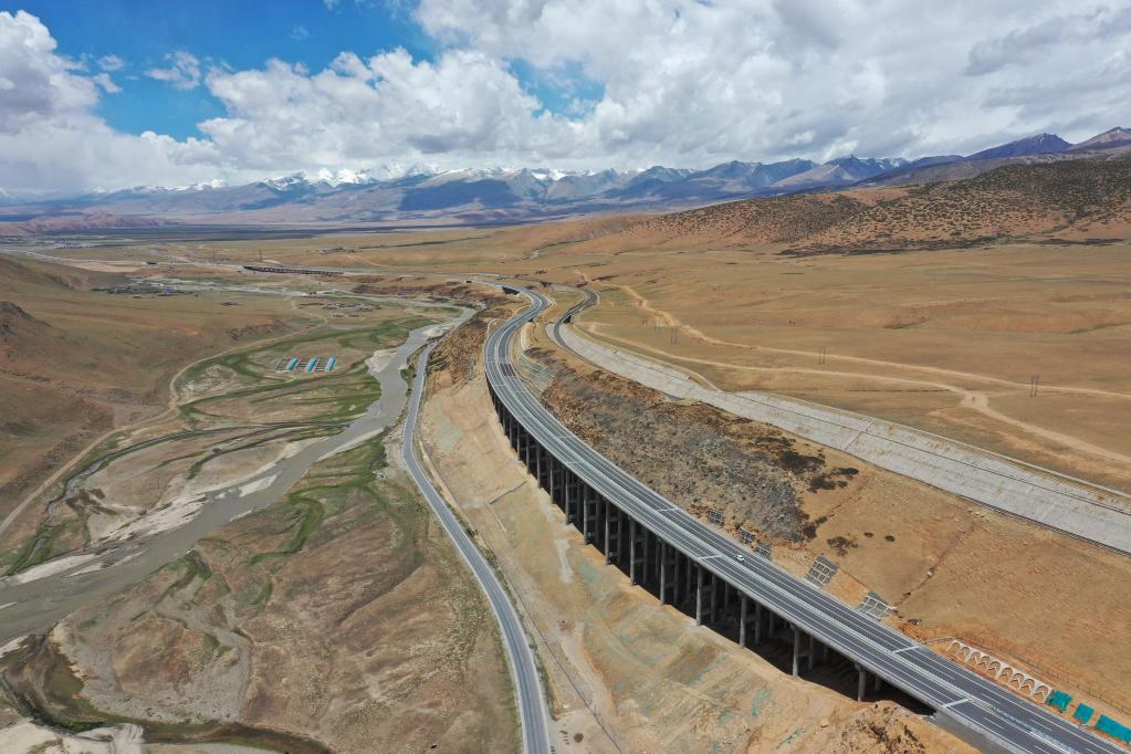 图为京藏高速那曲至羊八井段那曲河特大桥(2021年6月29日摄)。 新华社记者刘洪明 摄