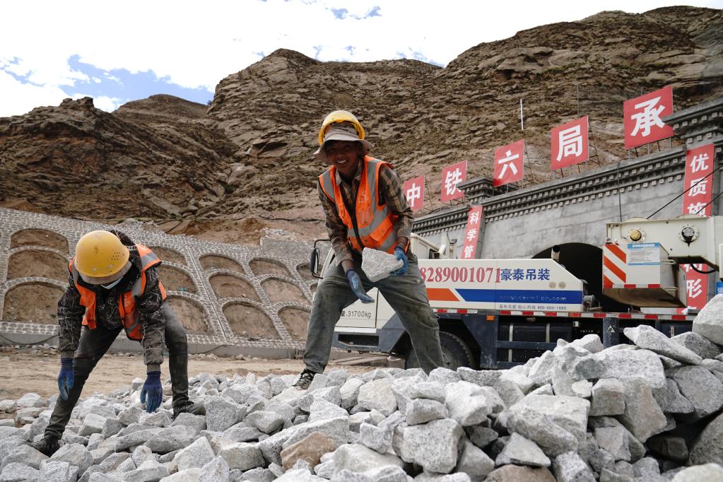 记者近期在位于拉萨市高新区由中铁六局承建的忠材山隧道施工现场看到,工人们正进行给排水工程、照明安装、边坡处理等收尾工序。20岁的旦增索朗来自山南市浪卡子县多却乡,正和工友们忙着搅拌水泥、整理石块。“我们在这儿干活一天230元,包吃包住,一起来的20多人全是山南老乡。这几年西藏工程多,我们打工挣钱的路子越来越广。”