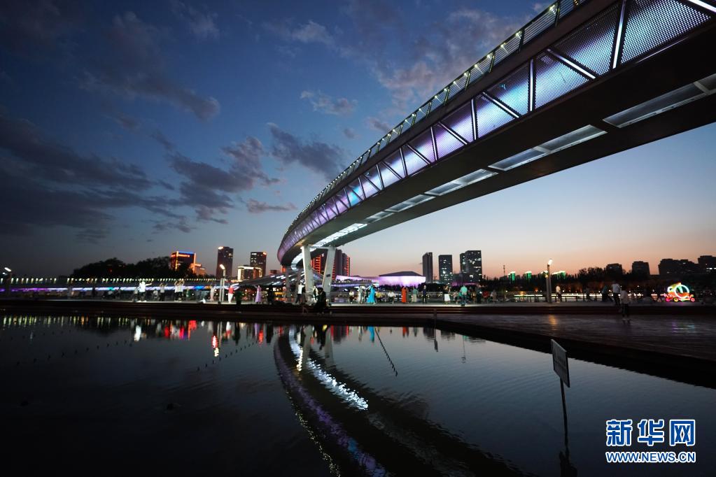 夜幕降临,山西省太原市汾河景区灯光璀璨、夜色迷人。