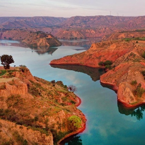 陕西省靖边县龙洲镇波浪谷丹霞景区地处陕北黄土高原,峡谷四面环山,线谷、巷谷、绝壁等构成了特有的波浪形砂岩地貌,景观独特。