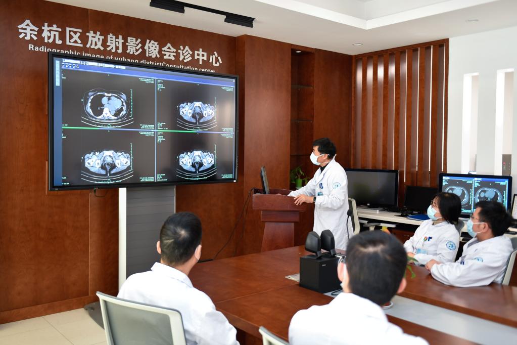 在杭州市余杭区放射影像会诊中心,医生通过互联网调取检查影像的方式进行远程会诊。新华社记者黄宗治 摄