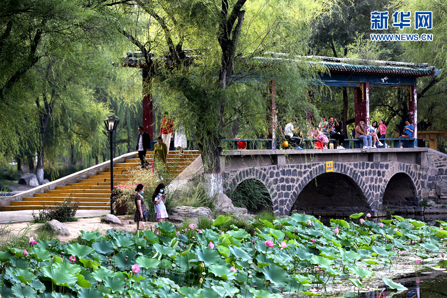 挺立在秋水中的荷花,在阳光照耀之下,散发阵阵清香,吸引了不少市民驻足观赏、拍照留念。新华网 石毅 摄