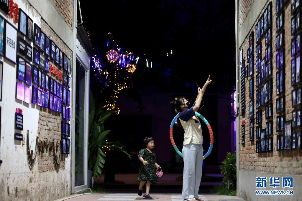 8月7日晚,游人在合肥市瑶海区长江180艺术街区参观游览。