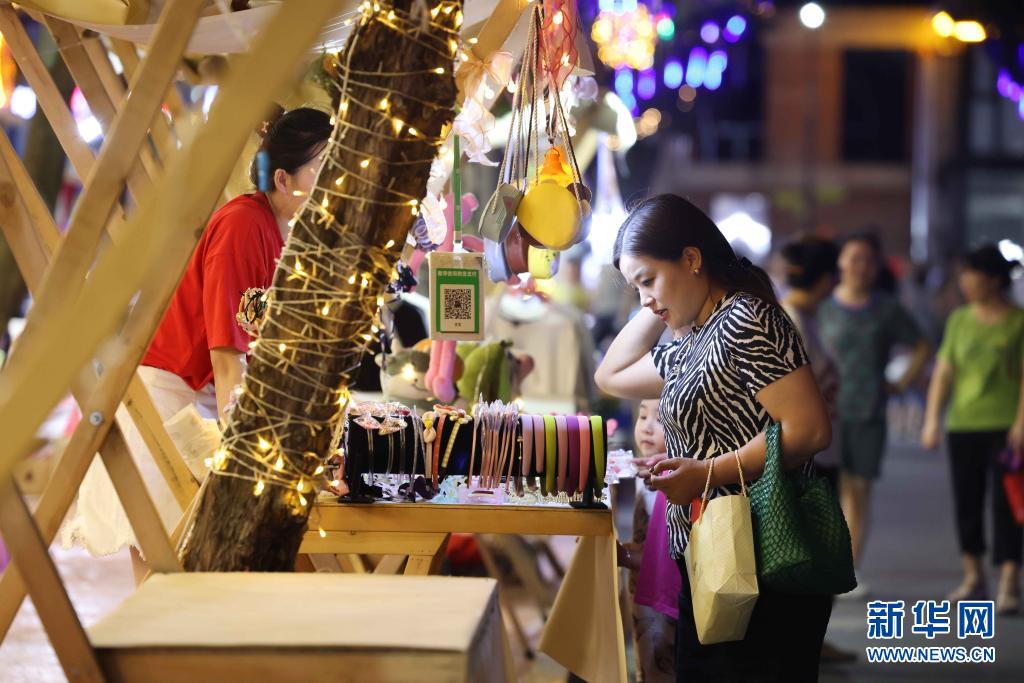 8月7日晚,游人在合肥市瑶海区长江180艺术街区的夜间市集购物。