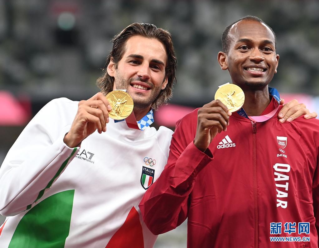 8月1日晚,男子跳高决赛出现罕见一幕,卡塔尔选手巴希姆和意大利选手坦贝里分享了冠军。