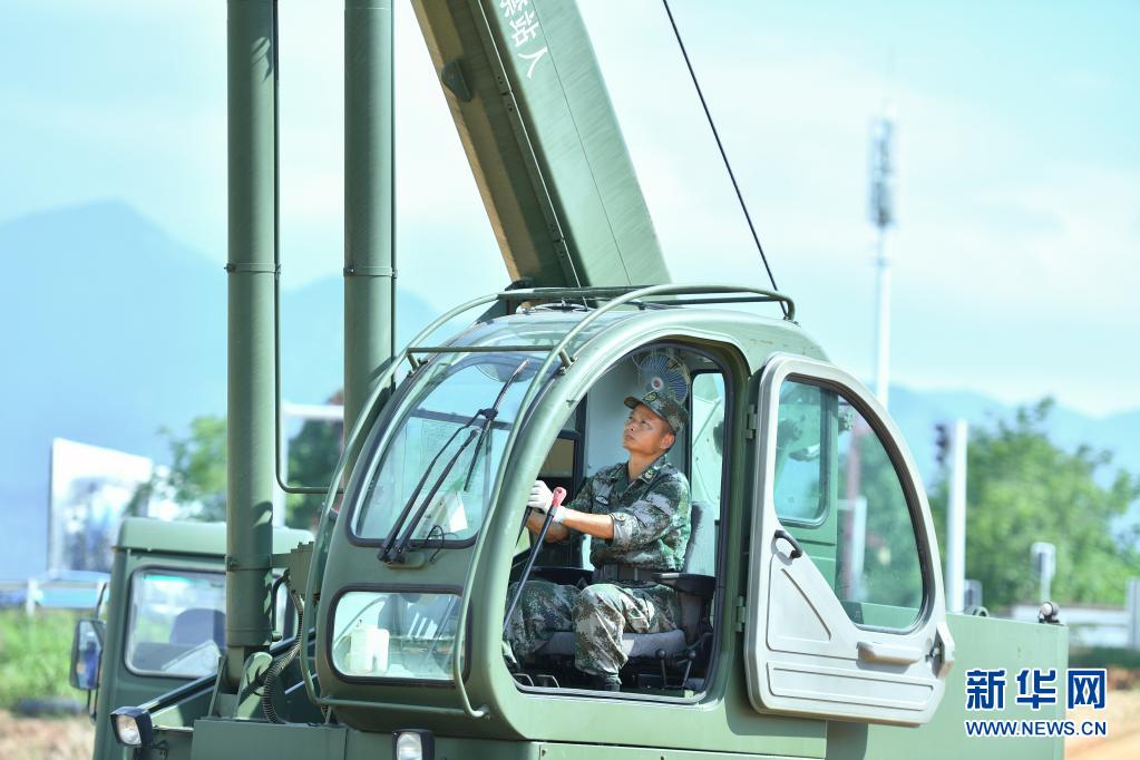 战略支援部队某大队一级军士长高玉华操作工程机械(7月23日摄)。 新华社记者 陈泽国 摄