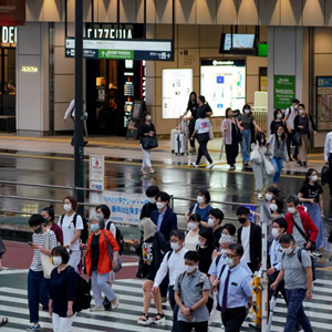 7月8日,人们戴着口罩在日本东京新宿车站附近出行。(新华社发,克里斯托弗·朱摄)