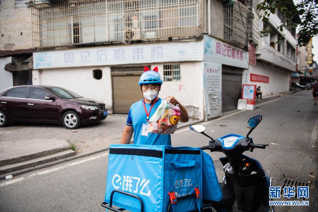 为保障隔离区内居民的正常生活,当地政府积极保障外卖、快递等服务的运营。今年22岁的燕赢召是张家界一名饿了么专职外卖员,从事外卖行业4年了。最近一段时间,他和许多同事放弃休息,主动报名坚守一线,保障居民的食品和药品等物资运输,平均每天可送30多单。