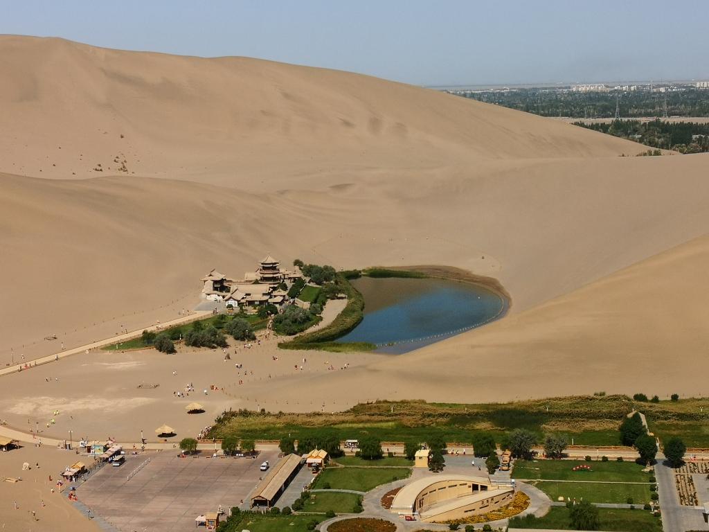 8月6日屈建军研究员团队拍摄的甘肃敦煌鸣沙山月牙泉景区。受访者供图