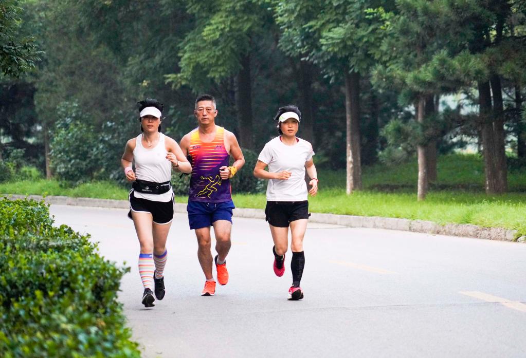 河北省遵化市的长跑爱好者在公园晨练。新华社发 刘满仓 摄