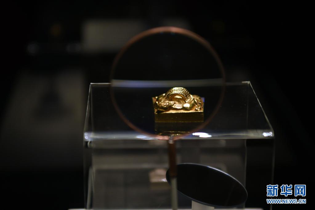 这是展出的“文帝行玺”龙钮金印(8月10日摄)。 新华社记者 金良快 摄