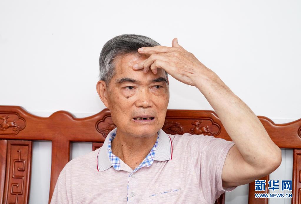 麦贤得额头上还能看到当年战斗时留下的伤疤(5月22日摄)。新华社发(栾铖 摄)