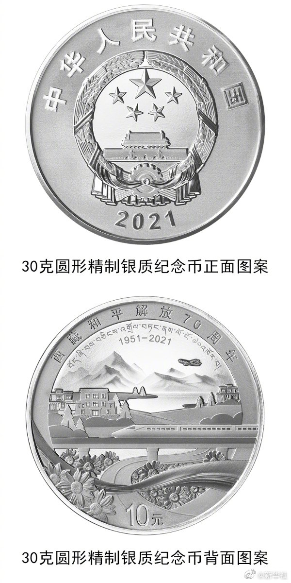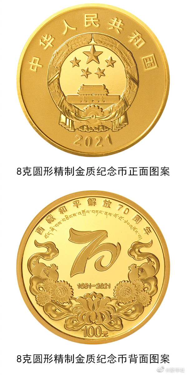 中国人民银行定于8月16日发行西藏和平解放70周年金银纪念币一套。其中金质纪念币1枚,含纯金8克,最大发行量10000枚;银质纪念币1枚,含纯银30克,最大发行量20000枚。(记者张千千)