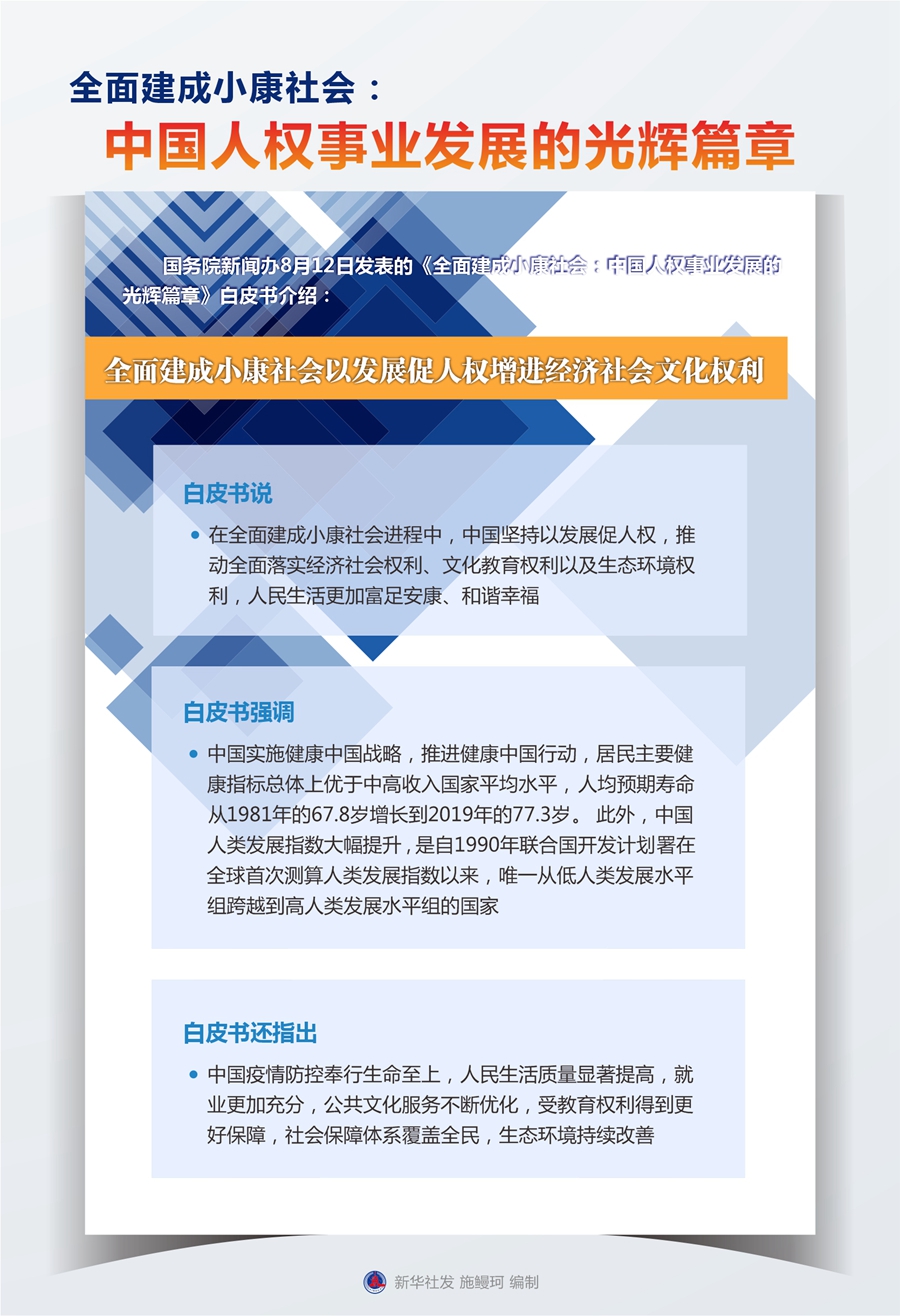 图表:白皮书:全面建成小康社会以发展促人权增进经济社会文化权利 新华社发 施鳗珂 编制