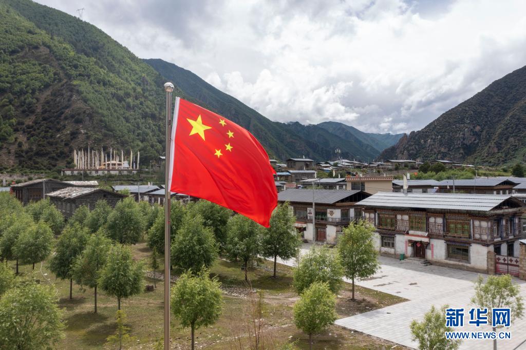 西藏林芝市工布江达县太昭村全景(无人机照片,7月9日摄)。新华社记者 旦增尼玛曲珠 摄