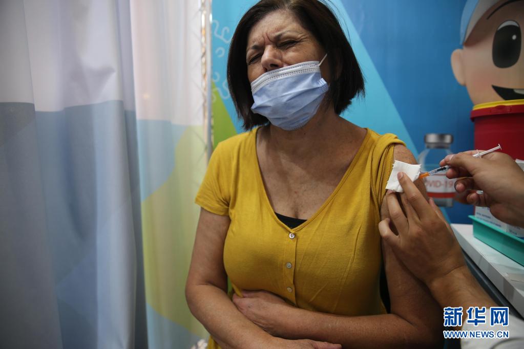 8月12日,一名妇女在以色列耶路撒冷接种第三剂新冠疫苗。新华社发(穆阿马尔·阿瓦德摄)