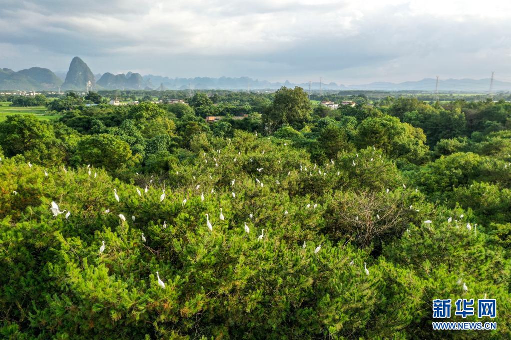 近年来,广西桂林市临桂区坚持经济发展与生态保护相结合,积极践行“绿水青山就是金山银山”理念,统筹山水林田湖草沙系统治理。经过努力,生态环境持续改善。在临桂区四塘镇王家村,自2019年起,便有白鹭、池鹭、牛背鹭、夜鹭等鸟类陆续来此筑巢繁衍,鹭鸟成为乡间的一道风景。