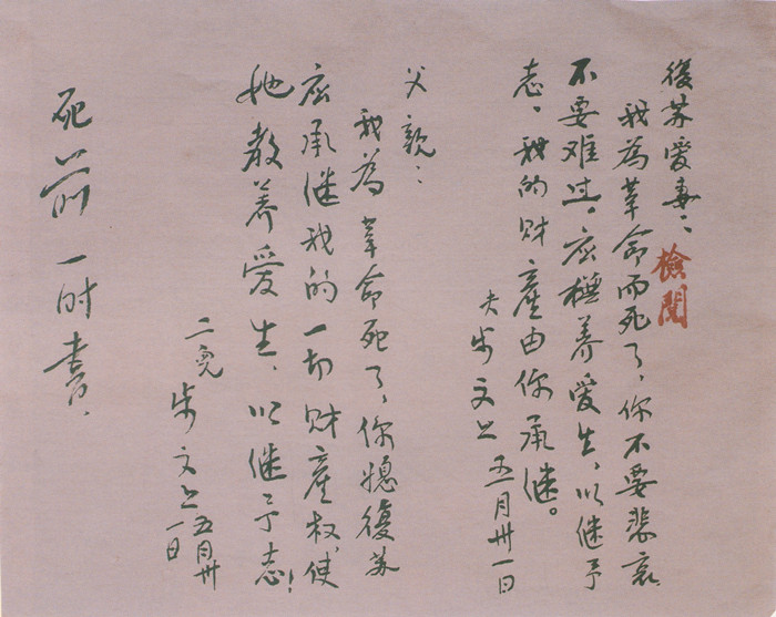 王步文从容地给爱人留下绝笔信