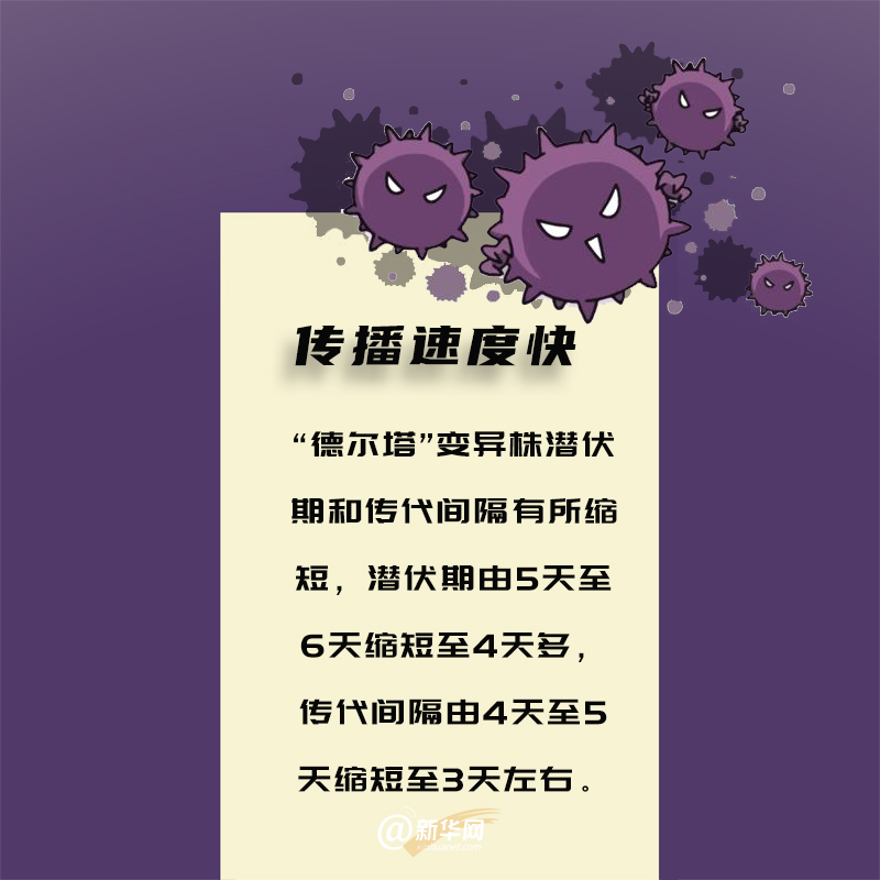 近期,全国多地出现新冠变异病毒德尔塔毒株确诊病例。来势汹汹的“德尔塔”变异株都有哪些特点?一图告诉你。(策划:周琳 林艳兴;文字:严曦梦 田晓丽;设计:佘灵 王正一;来源:国务院联防联控机制发布)
