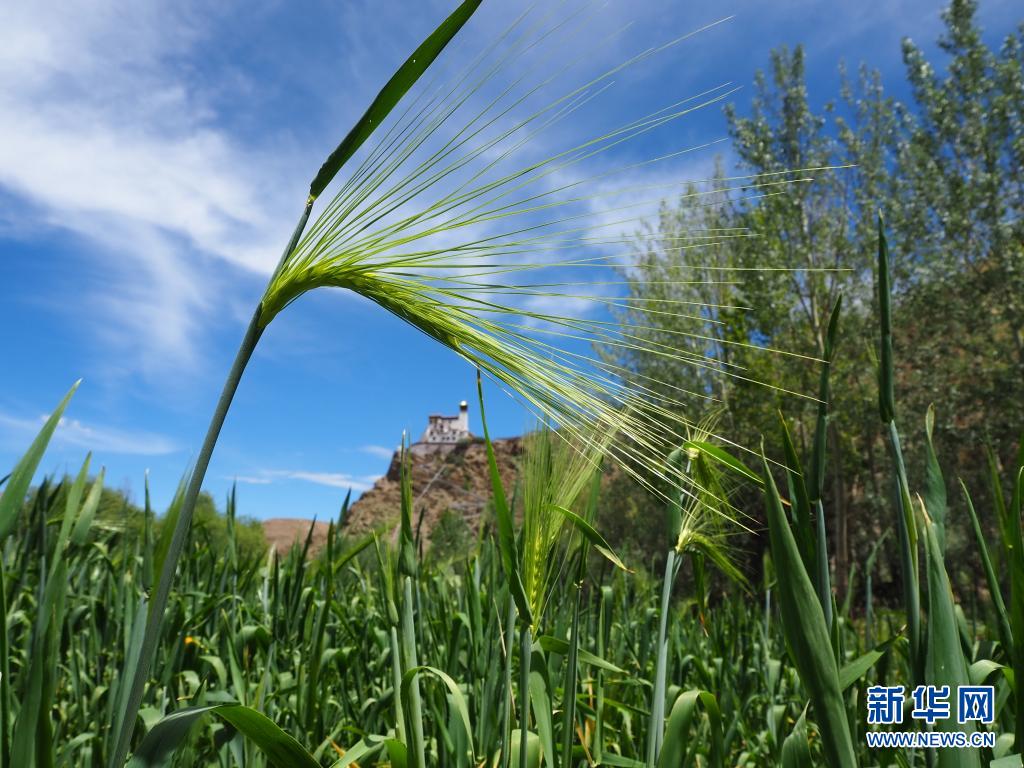站在西藏历史上第一块农田萨热索当上看西藏第一座宫殿雍布拉康(6月24日摄)。新华社记者 金一清 摄