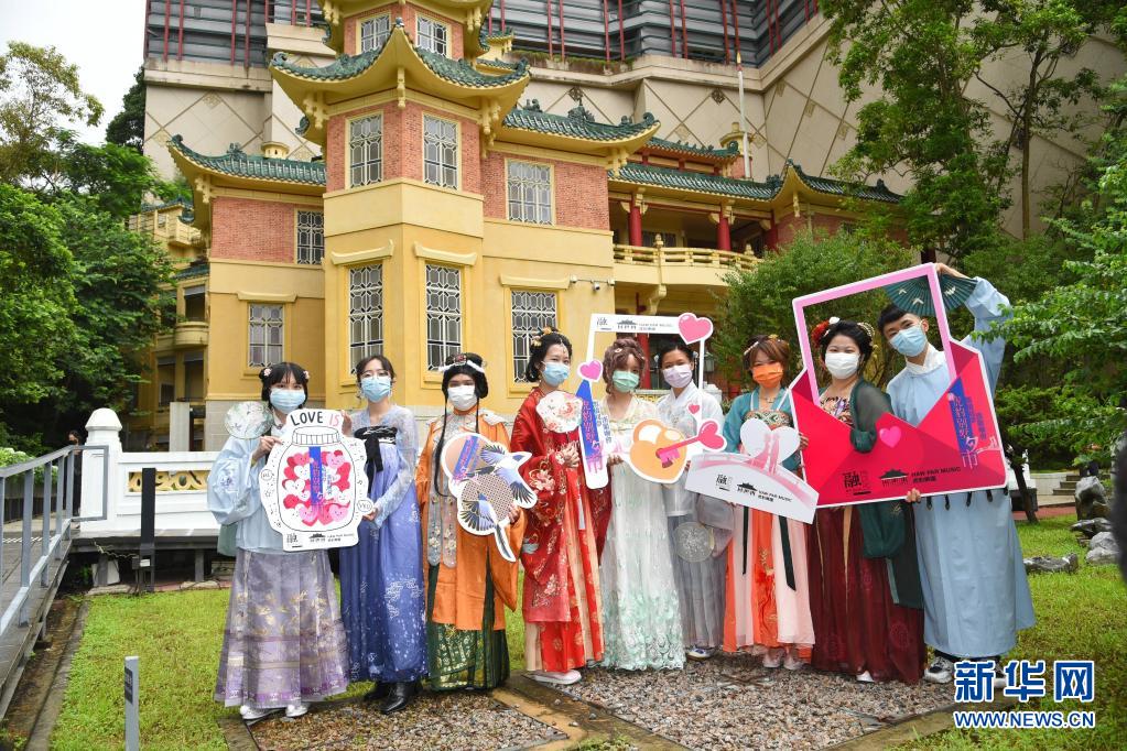 新华社香港8月14日电(记者黄茜恬 陈珮盈)恰逢七夕佳节,以汉服为诗,以佳节为媒,香港大型汉服盛宴“鹊桥圆梦会”14日在历史建筑虎豹乐圃举行。多位香港汉服爱好者拿出精美的作品,吸引众多香港市民前来领略中华传统文化之美。