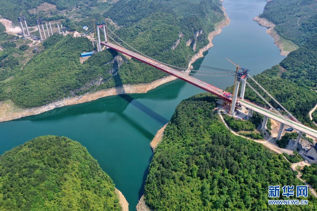 这是合龙后的遵余高速飞龙湖乌江大桥(2020年4月29日摄,无人机照片)。