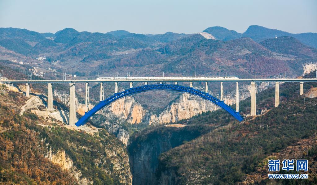 一列动车组列车从成贵高铁西溪河大桥上驶过(2019年12月16日摄,无人机照片)。