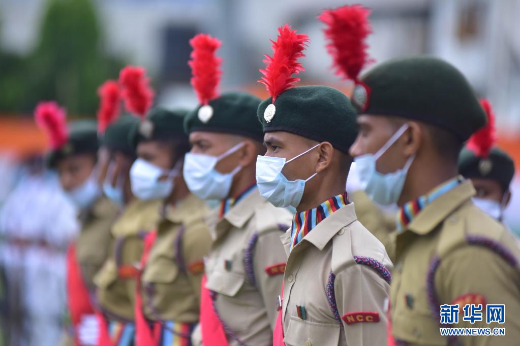 8月15日,军人在印度阿萨姆邦参加独立日庆祝活动。