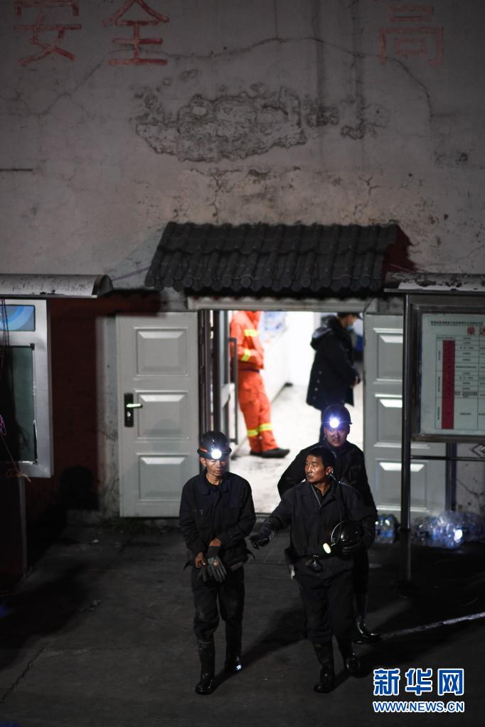 8月15日,救援人员从矿井入口处走出。新华社记者 吴刚 摄