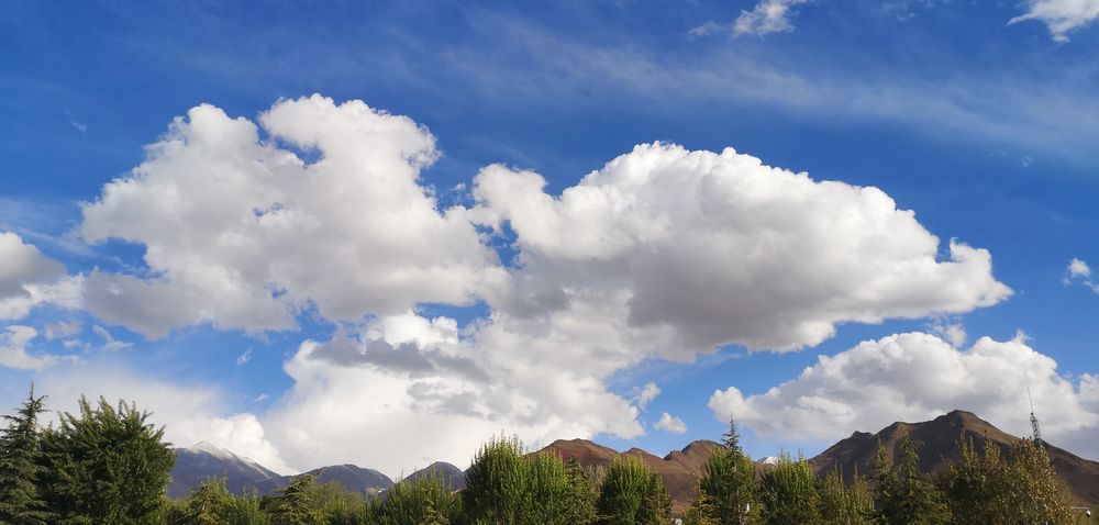 拉萨天空中的朵朵白云。新华社记者董琳娜 摄