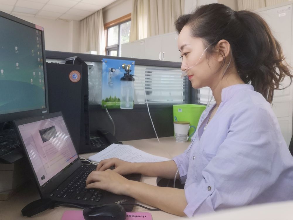 新华社西藏分社给每个工位都安装了供氧装置。同事们在工作的时候就可以吸氧。新华社记者司源 摄