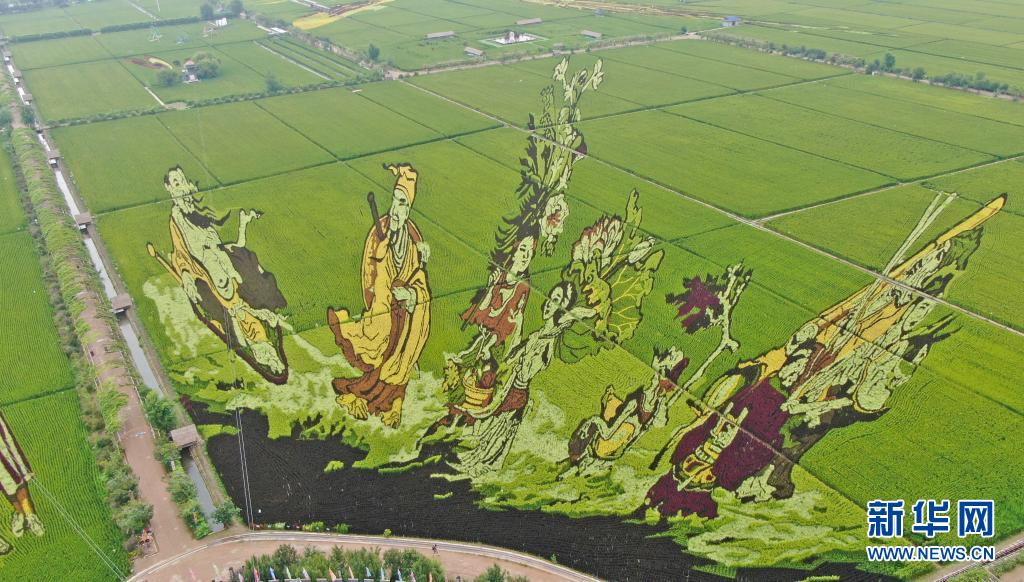 这是8月16日拍摄的稻田画《八仙过海》(无人机照片)。