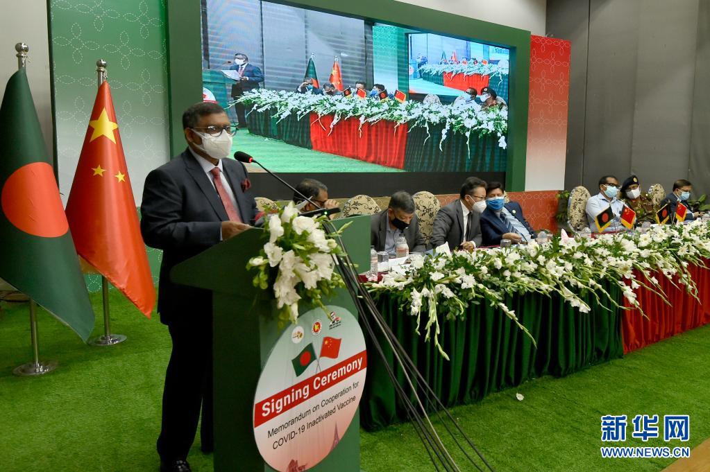 新华社达卡8月17日电(记者刘春涛)中国国药集团与孟加拉国卫生和家庭福利部以及孟加拉国伊思达疫苗有限公司,16日以线上和线下相结合方式签署新冠灭活疫苗合作备忘录,中方企业代表和孟方政府、企业代表分别在合作备忘录上签字。