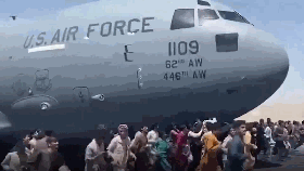 视频截屏:一些阿富汗人在喀布尔机场追赶美国飞机。