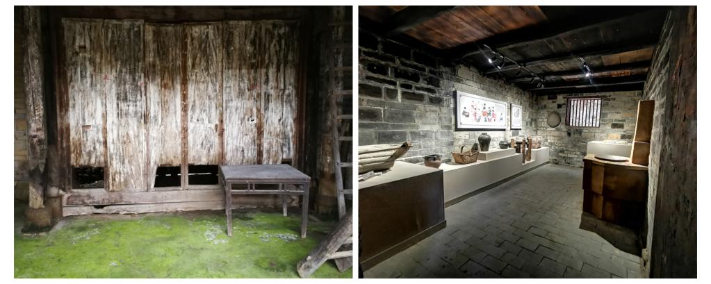 拼版照片:左图为2017年8月1日,记者拍摄的老宅内景。