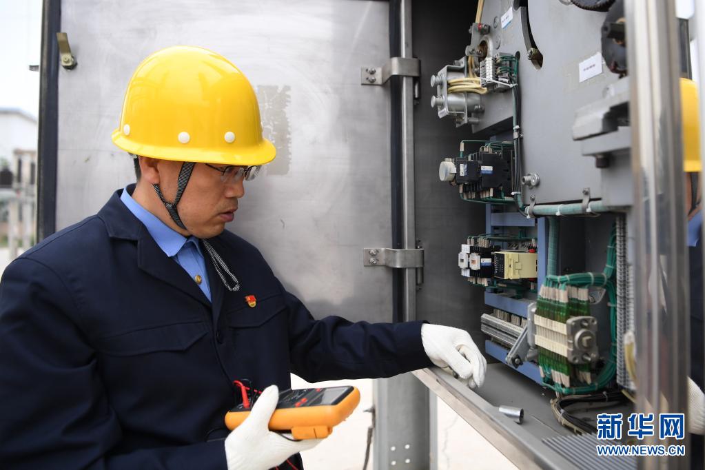 8月17日,石瑾在检查高压断路器机构箱内设备状态。
