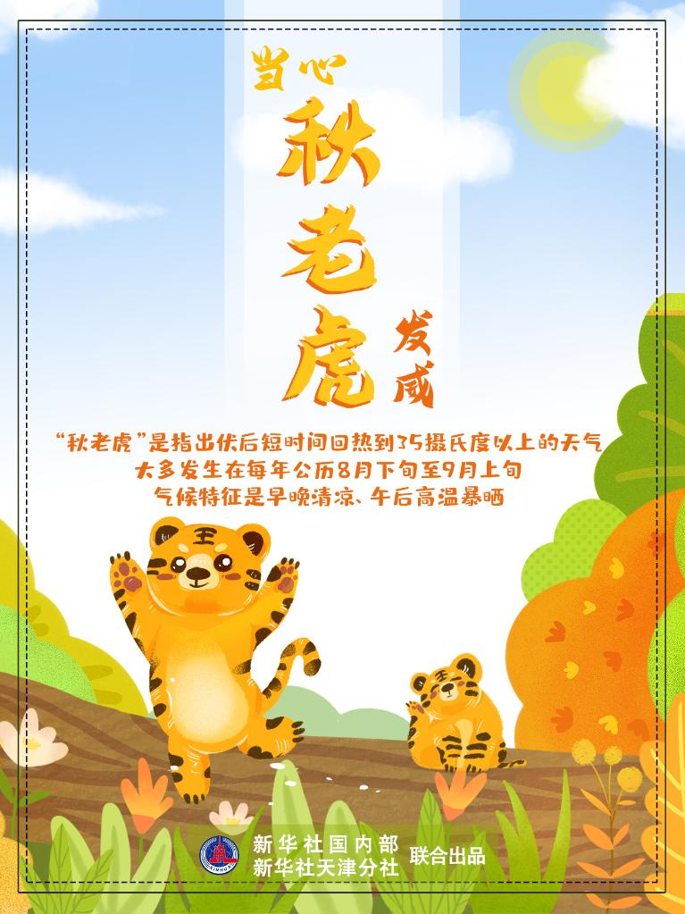 所谓“秋老虎”,是指出伏后短时间回热到35摄氏度以上的天气,大多发生在每年公历8月下旬至9月上旬,气候特征是早晚清凉、午后高温暴晒。