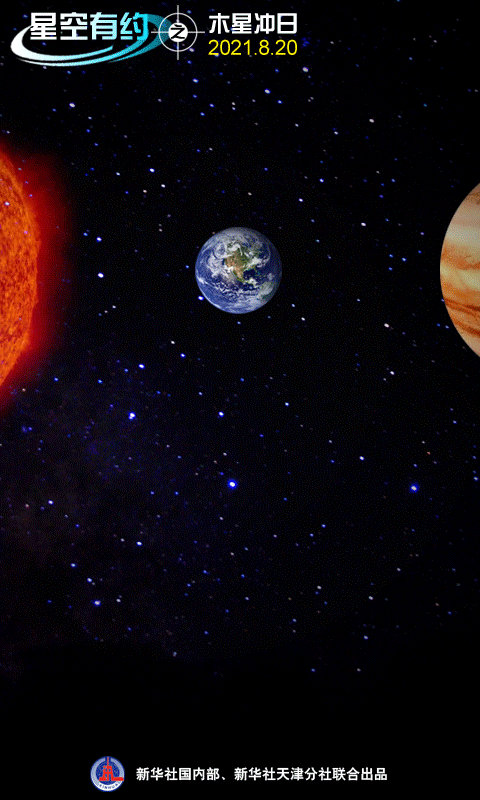 所谓木星“冲日”是指地球、木星在各自轨道上运行到太阳、地球和木星排成一条直线或近乎一条直线时,从地球上看木星与太阳方向正好相反,它们的黄经相差180度的现象。“冲日”前后木星距离地球最近,也最明亮。