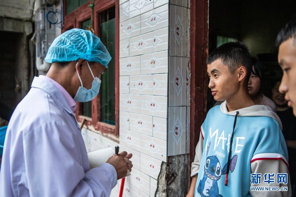 章忠武在入户随访17岁以下青少年疫苗接种情况(8月16日摄)。新华社记者 陶亮 摄