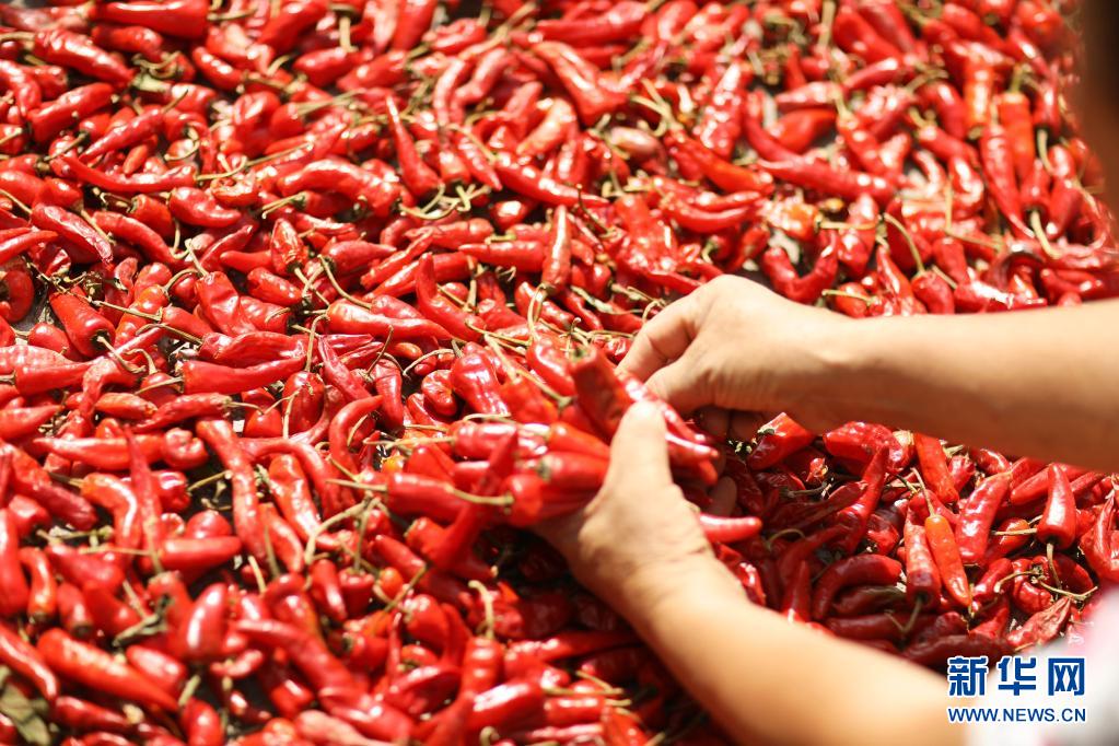 8月18日,赤水市复兴镇太和村村民在晾晒辣椒。